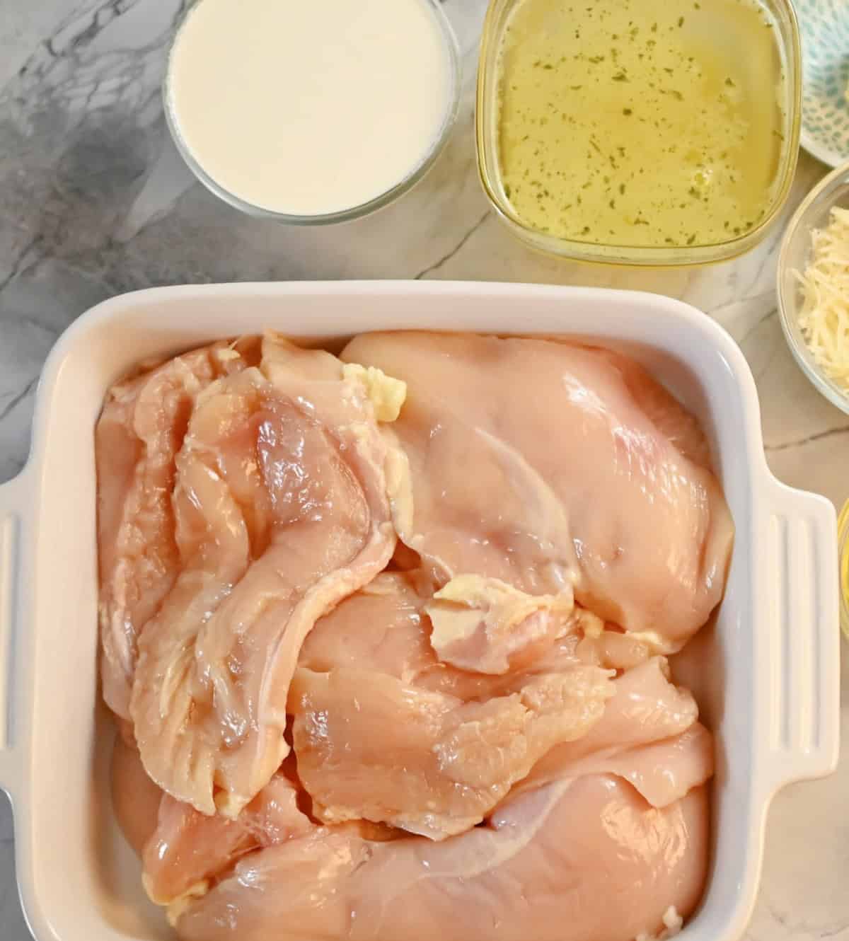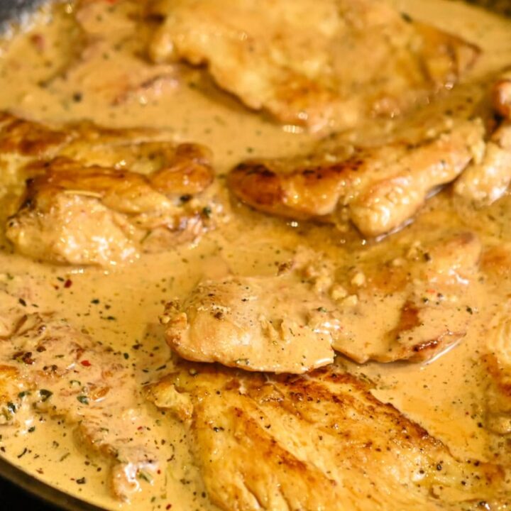 This is a chicken breast recipe but you could also swap the boneless chicken breasts for boneless chicken thighs. You will simply just need to flatten the thighs with a meat mallet prior to cooking.