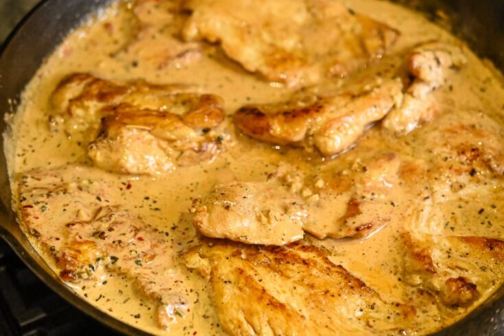 Return the cooked chicken to the skillet, nestling it into the sauce, and let everything simmer together for a few more minutes so the flavors can meld. Once the sauce is rich and creamy, it's ready to serve.