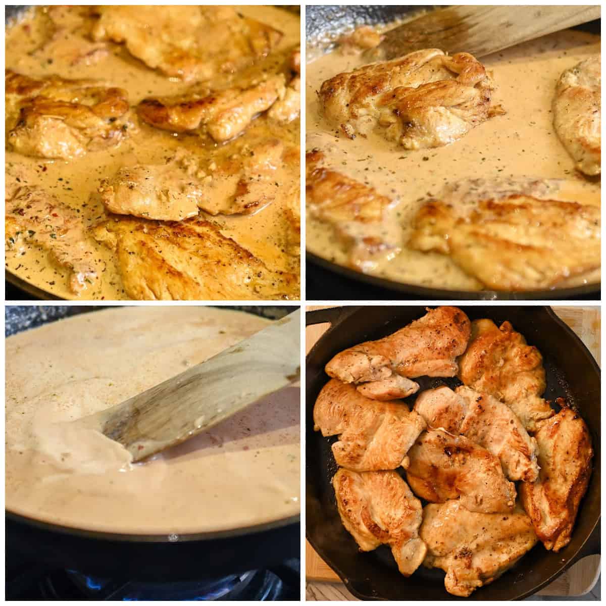 - Next, add the chicken back in the sauce and let the sauce simmer and thicken for a few minutes.