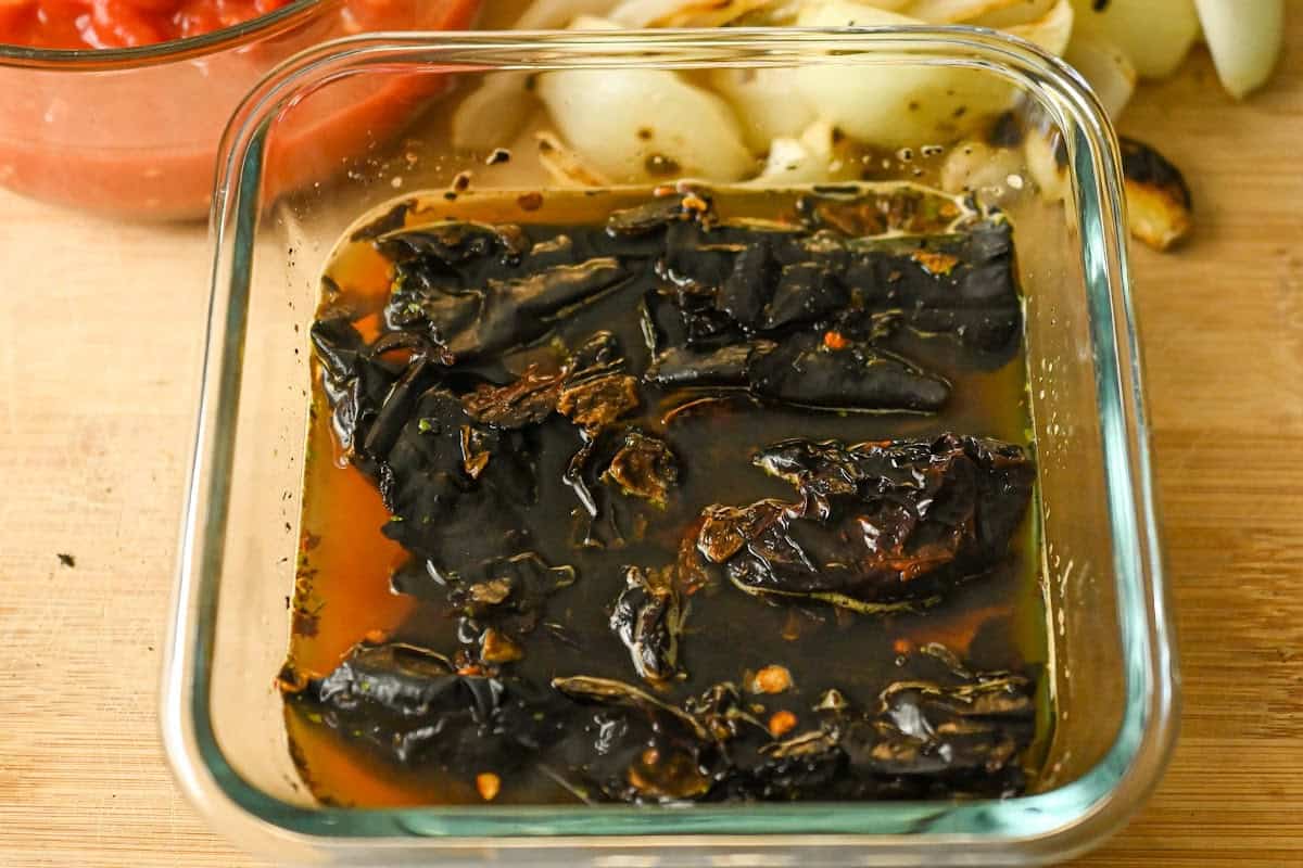 This recipe uses ancho, guajillo, and arbol chilies.