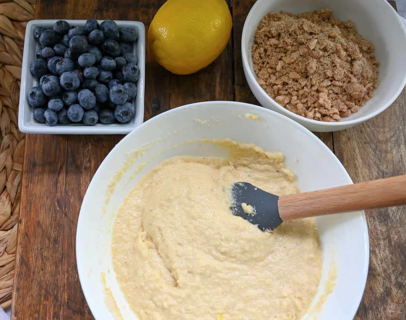 Made with only wholesome ingredients like fresh blueberries, almond flour, a tiny amount of coconut flour, eggs, sour cream, and butter, and of course a keto-approved sugar substitute.