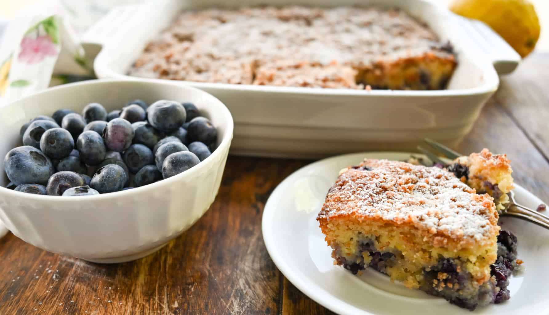 Clocking in at only 3.7 g net carbs per serving, it's a low-carb blueberry cake that you can treat yourself to.