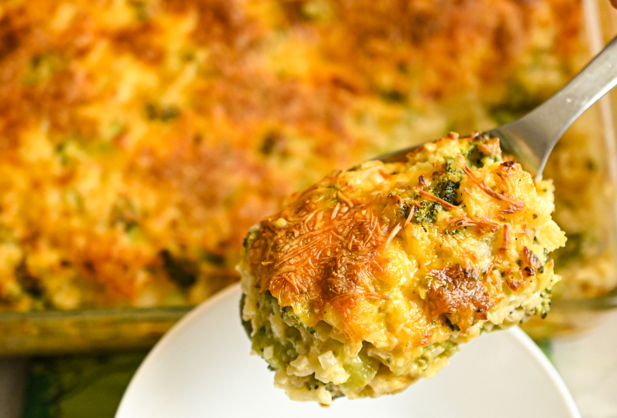 It's a broccoli cauliflower rice casserole that's a delicious low-carb alternative to the starchy and carby classic American dish.