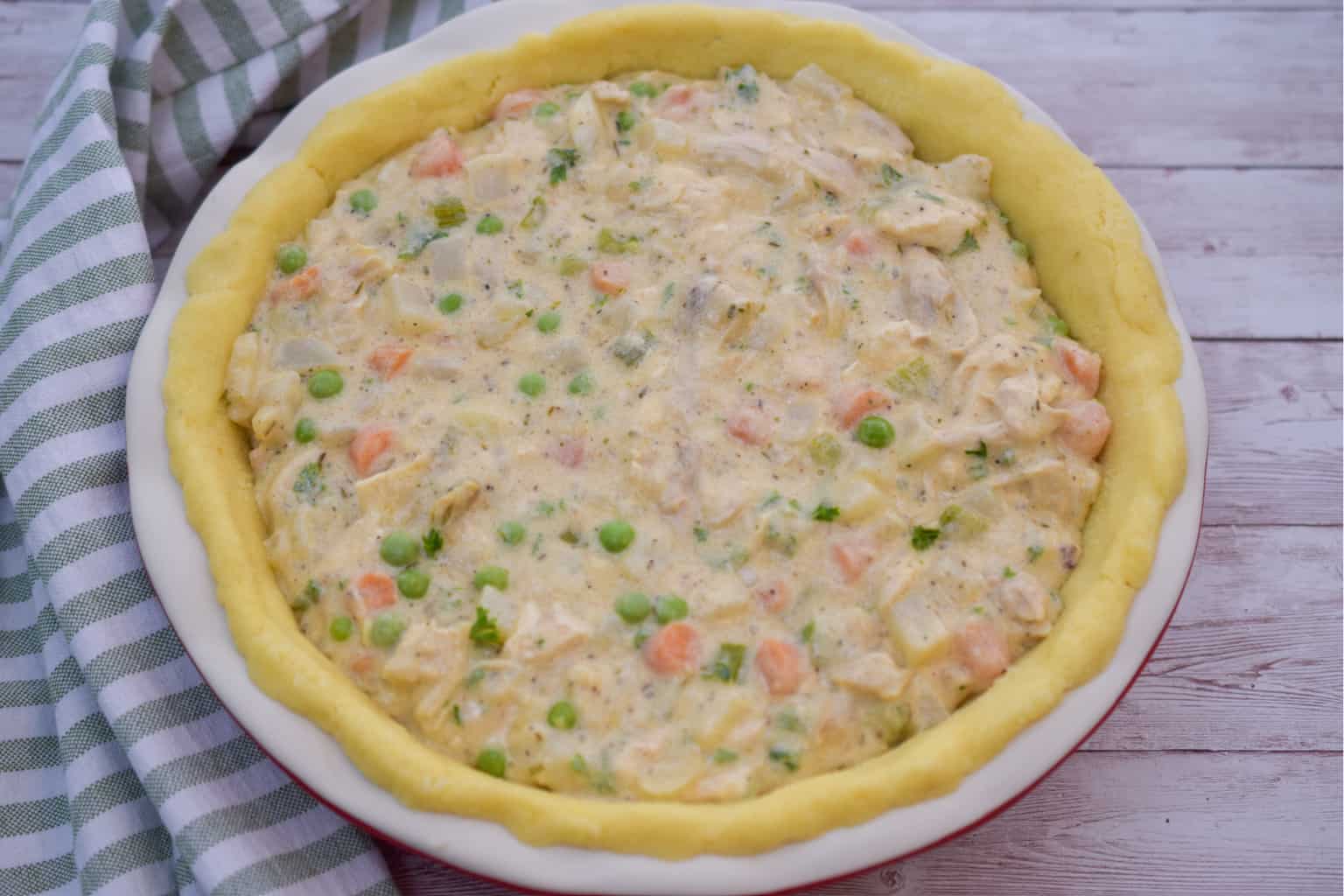 My homemade keto chicken pot pie is ultimate comfort food. It features an easy-to-roll flaky double crust and the creamiest chicken pot pie filling.