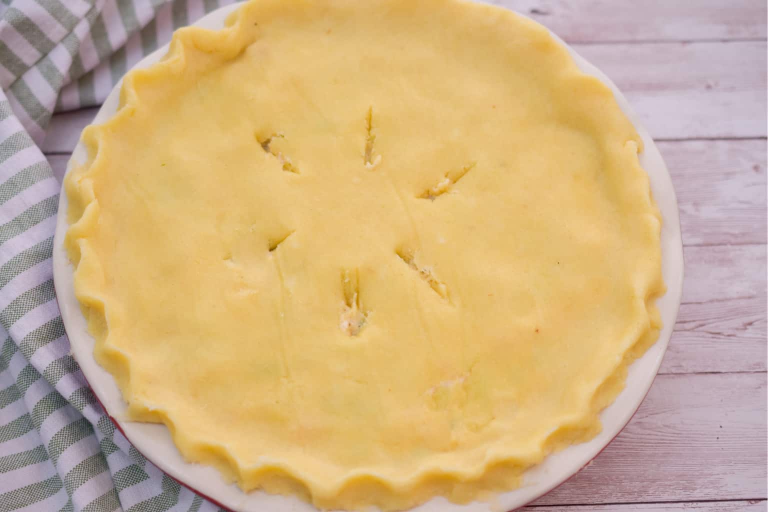 You can make an egg wash for the top of the pie that will make the crust golden and shiny, or use heavy whipping cream for a more rustic crust without the shine.