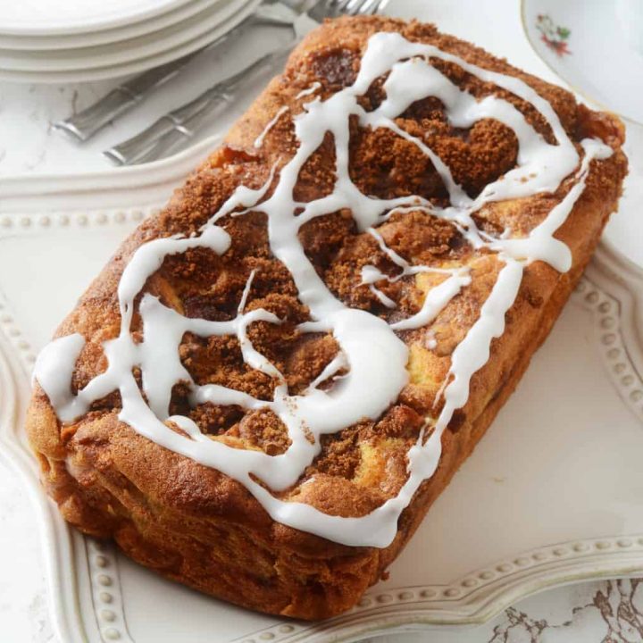 This keto cinnamon bread is quick and easy to make and features a delicious cinnamon swirl and vanilla icing drizzle. This cinnamon swirl quick bread is also gluten-free, grain-free, and low in carbs making it keto-friendly.