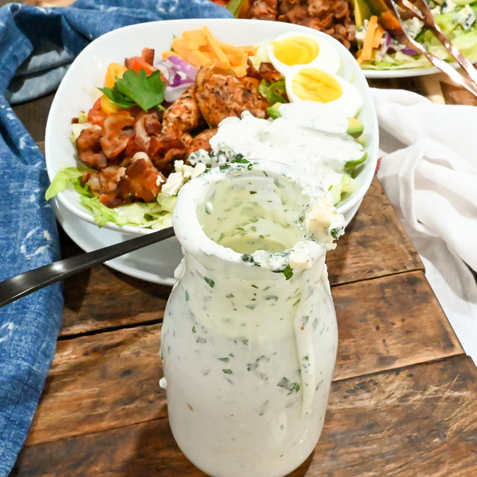 As far as which dressing is best for keto cobb salad, my preference is a blue cheese dressing. I just feel it naturally goes better with the blue cheese crumbles that are typical in this type of salad.