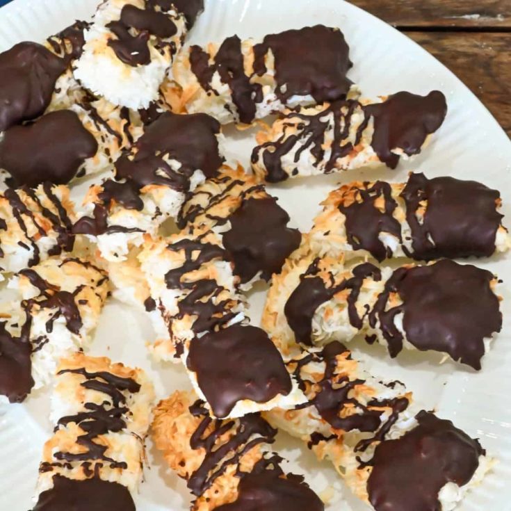 These easy keto chocolate dipped coconut macaroon bars are baked perfectly and then dipped in rich decadent chocolate for delicious twist on the classic macaroon.