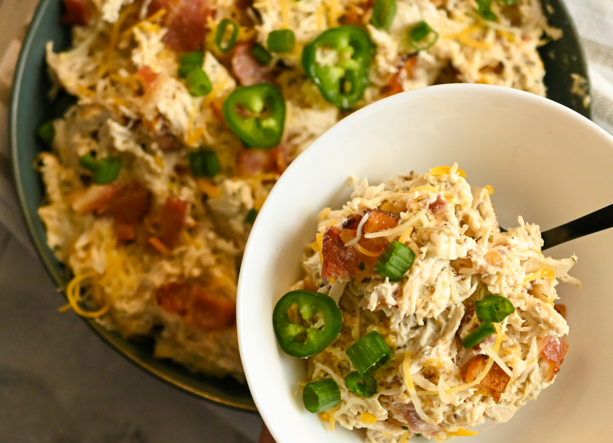 This recipe for keto crack chicken is easy, creamy, and a silencer of cravings. It's comfort food for the keto soul. Listed are three ways to make the recipe, plus a way to use leftover rotisserie chicken!