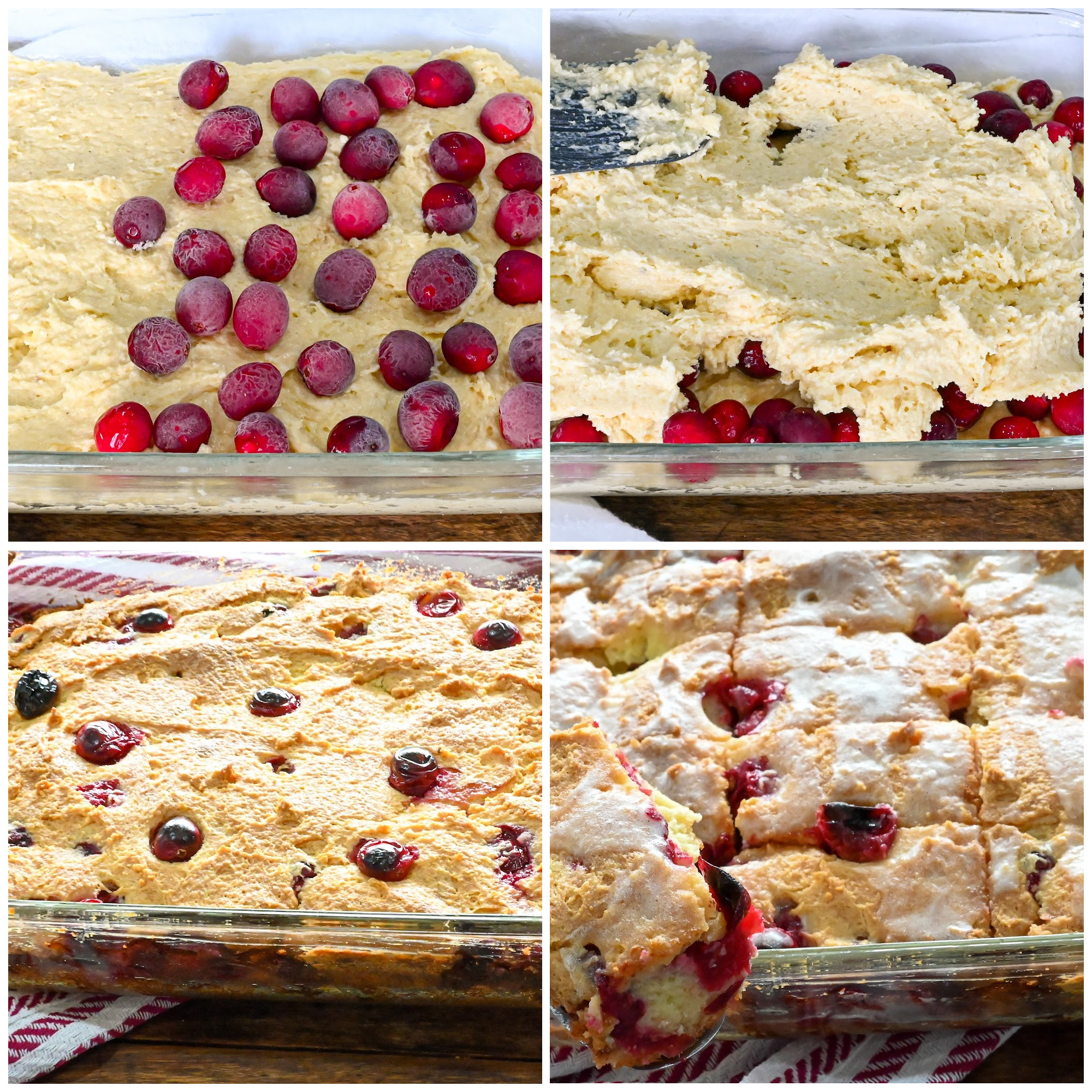 - Next, spread the remaining batter to cover the cranberries. Note, that some cranberries can be exposed.