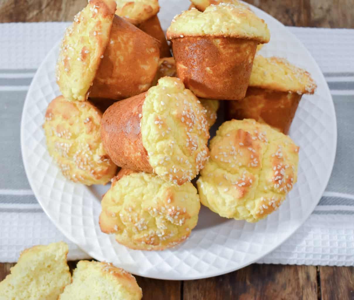 Before placing the bread in the oven, I brushed the tops of the keto muffins with a simple egg wash and sprinkled them with sesame seeds.