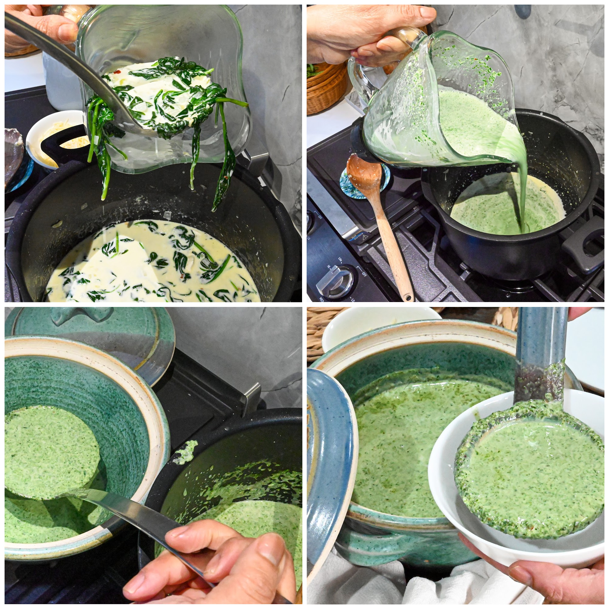 - Puree the spinach soup using a blender or immersion blender. See notes for how to purree hot soups safely below.