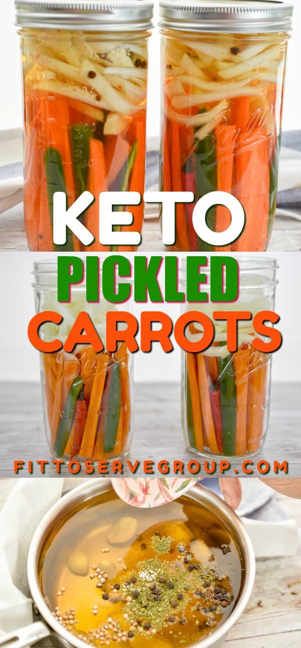 Keto Pickled Carrots is a recipe for quick pickled carrots. It includes onions, garlic, jalapenos and dried spices for a flavor packed pickle option. Since it uses apple cider vinegar it also has gut-boosting properties.