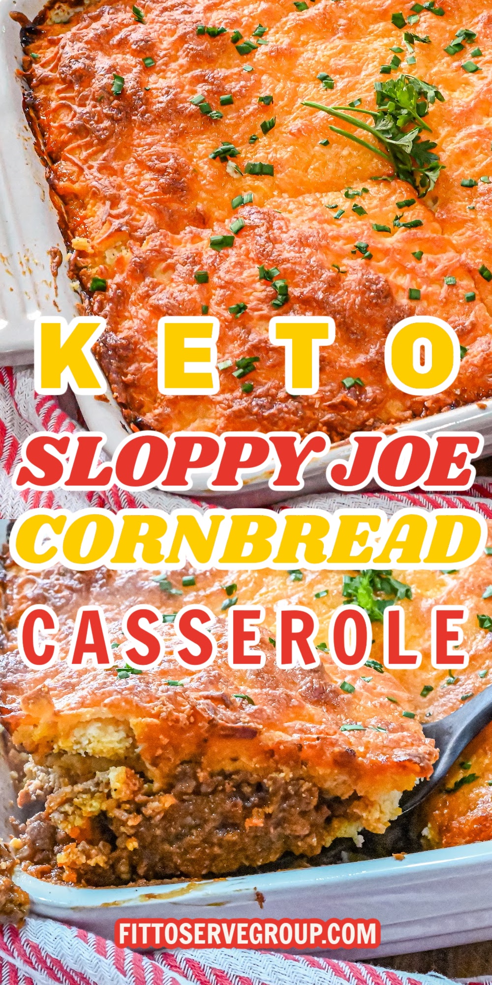 Making this a casserole that uses a keto cornbread mixture as the topping instead of sweet cornbread from a corn muffin mix makes it both gluten-free and much easier to eat without being covered in sauce!