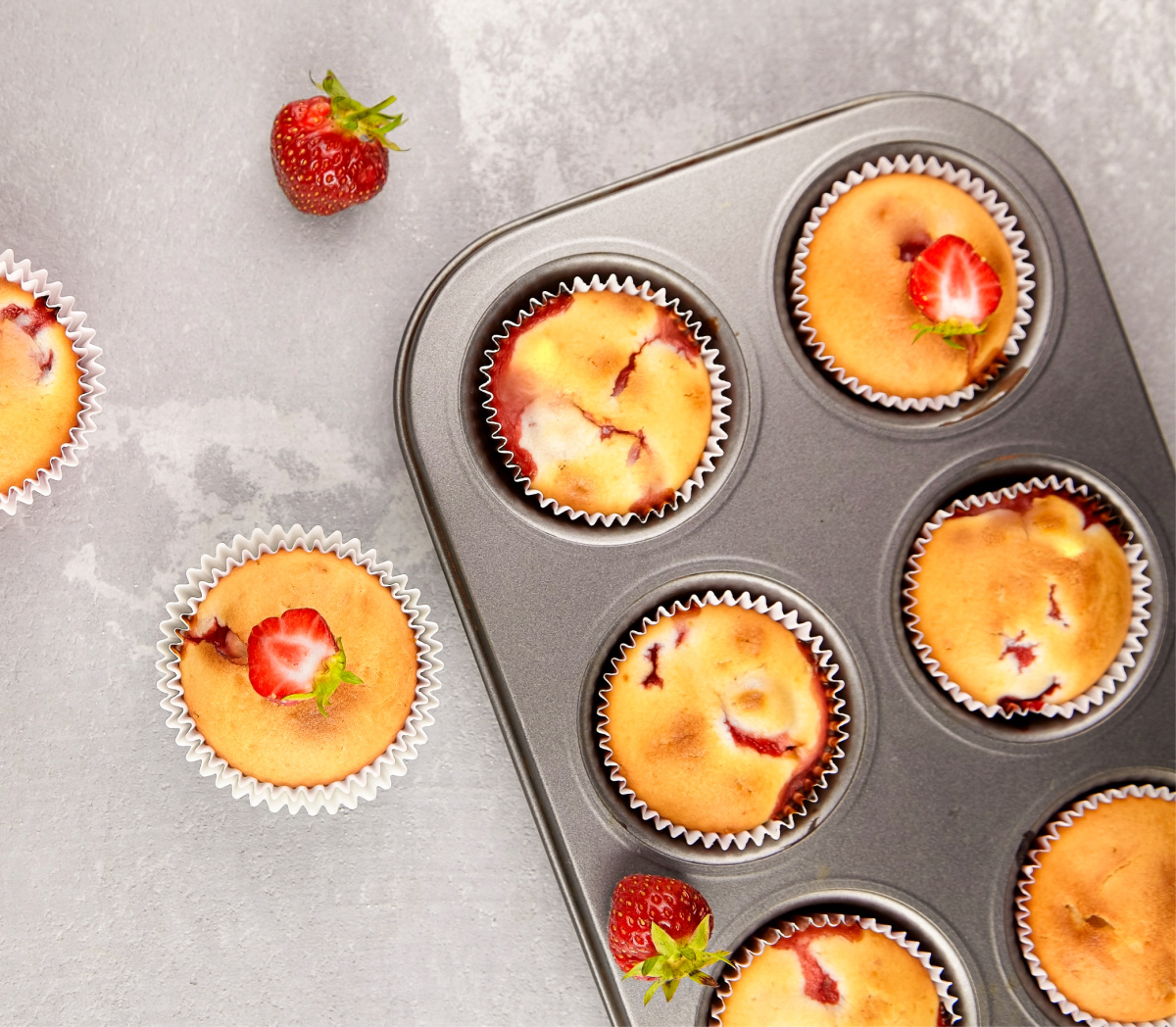 Strawberries are packed with nutrition, making these low-carb strawberry muffins a great choice for an after-school snack for your little ones.
