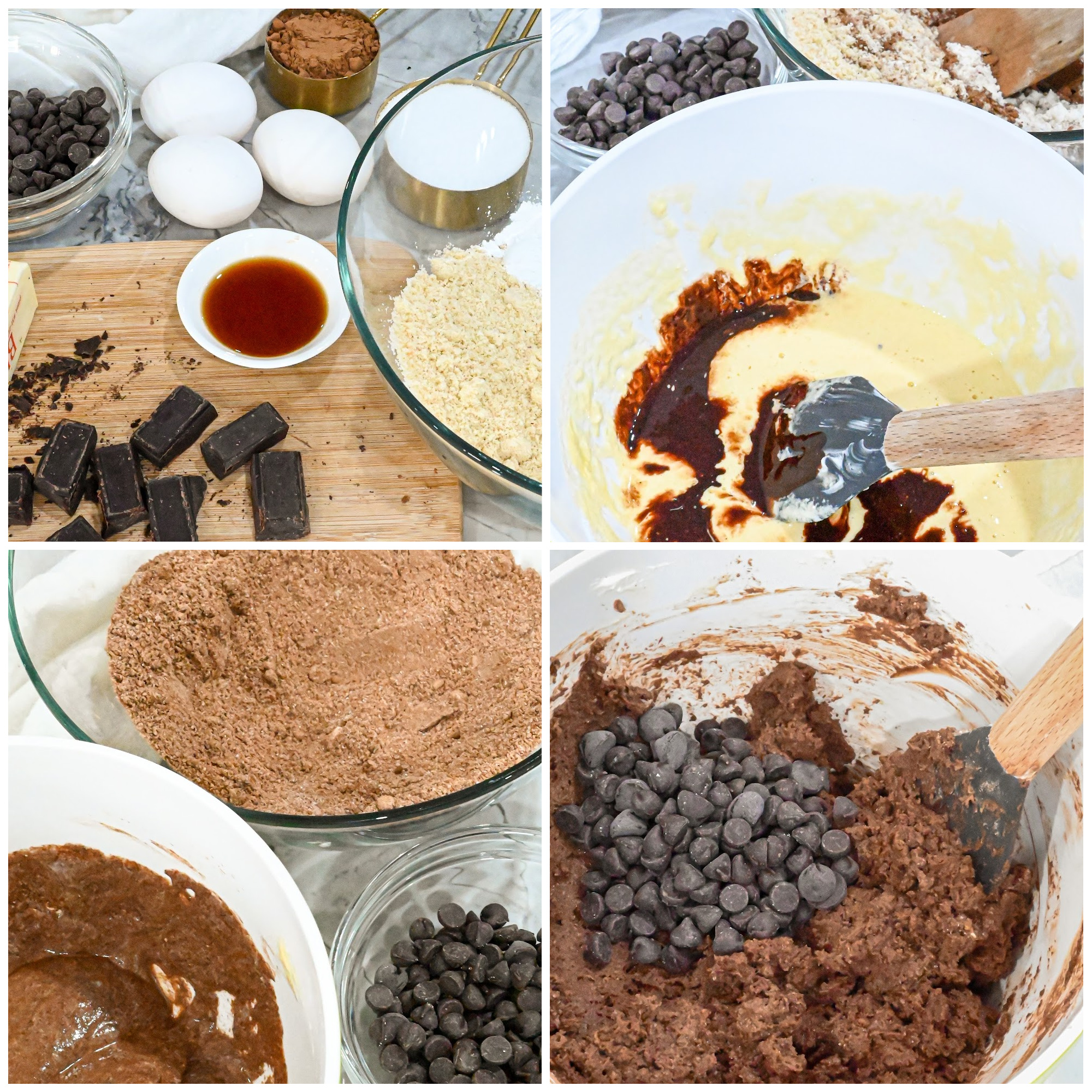 - Next add the dry ingredients (the almond flour, coconut flour, baking powder, cocoa powder, and salt) then stir until fully combined.