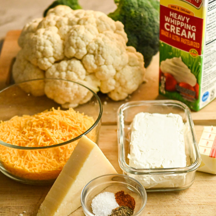 I chose to add broccoli to my easy keto cauliflower mac and cheese for added nutrition and flavor. You can, however, substitute the broccoli for cauliflower if you so desire.