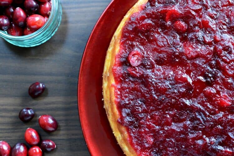 The velvety texture of this cheesecake adds the right contrast to the cranberries.