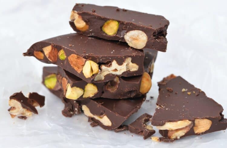 My recipe for keto chocolate bark has all the flavor of a chocolate candy bar minus all the high carbs. I love how this low carb chocolate bark also serves as a delicious fat bomb.
