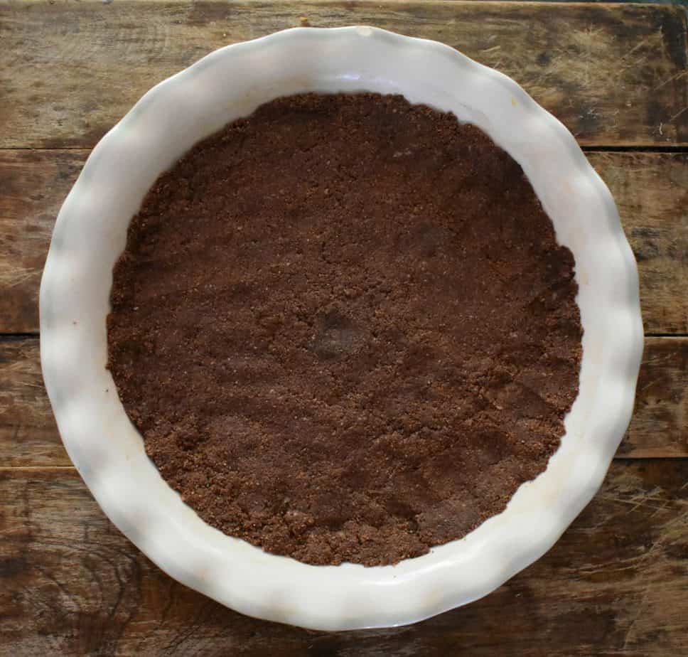 - Press the crust into a 9-inch pie crust and place in the fridge until ready to fill.