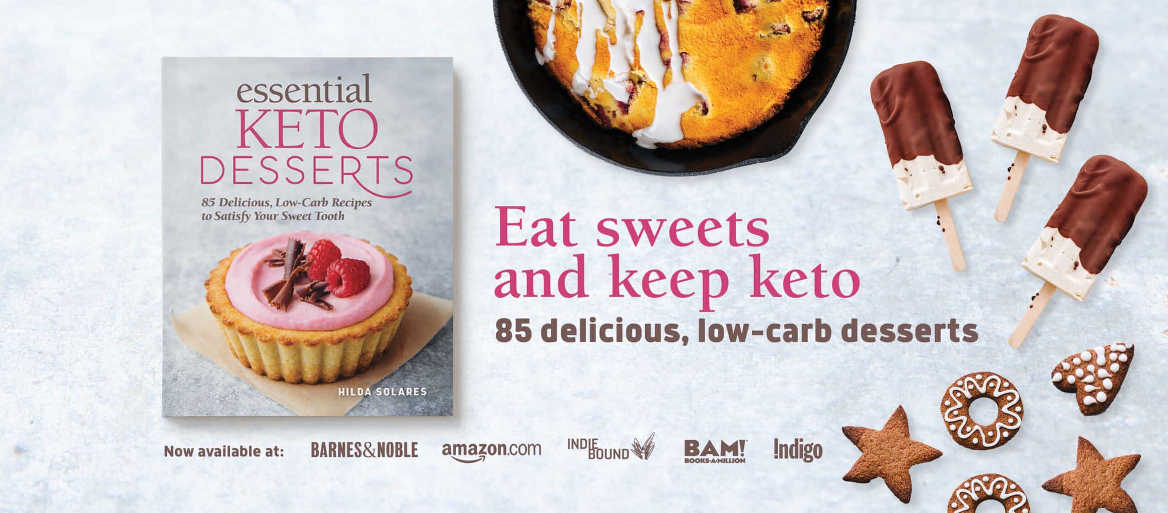 - Essential Keto Desserts: 85 Delicious, Low-Carb Recipes (our book)